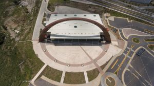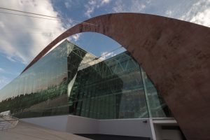 con un gran arco exterior, el Palacio de Convenciones de Zacatecas